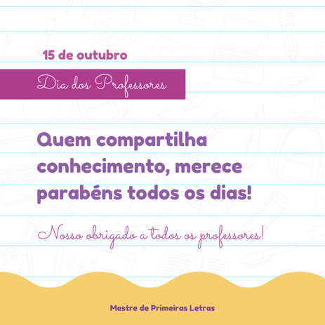 Para as redes sociais do Mestre de Primeira Letras focamos em refletir o lado lúdico do ambiente infantil, com cores vibrantes e ilustrações relacionadas à brinquedos e ao ambiente escolar.